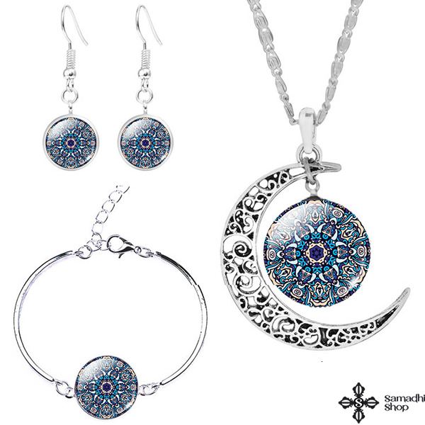 3 részes üveg mandala szett (nyaklánc + fülbevalók + karkötő)