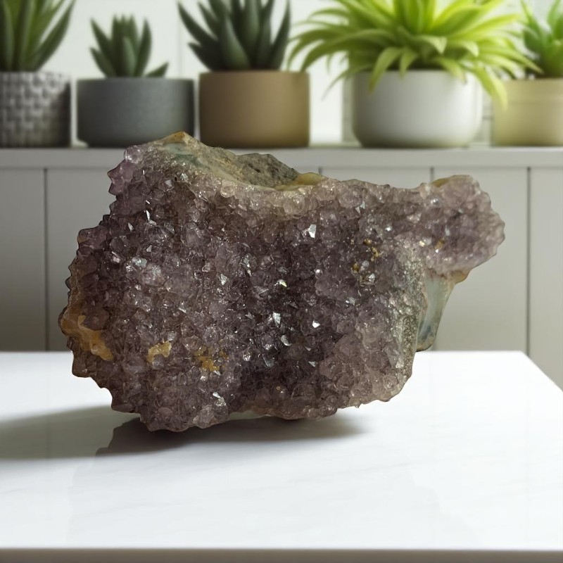 A finom, világos ametiszt árnyalatok azt is sugallják, hogy ez a drúza különösen alkalmas lehet stresszoldásra és mentális regenerációra. Aki érzékeny az energiákra, hamar észreveszi majd: a jelenléte nem harsány, inkább szeretetteljes, lágy jelenlét.