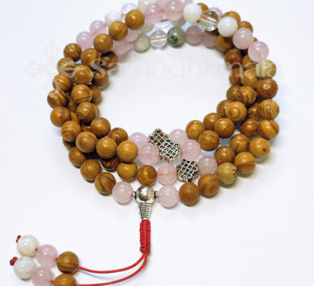 SAMADHI MALA: ez a jelzés azt jelenti, hogy a malát mi magunk terveztük, ásványait személyesen válogattuk, és mi is fűztük a hagyományok szerinti technikával. Azzal a szándékkal készült, hogy megtalálja és segítse leendő tulajdonosát. A mala áldásban részesült. Kívánjuk, hogy hozzon békét, harmóniát tulajdonosának.