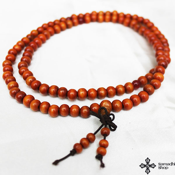 108 szemes, fából készült mala, 6 mm átmérőjű szemekkel. A mala áldott.