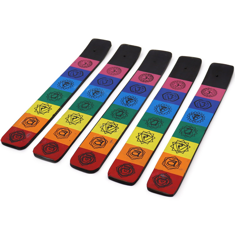 7 csakra szimbólummal festett mangófa füstölőégető léc.
