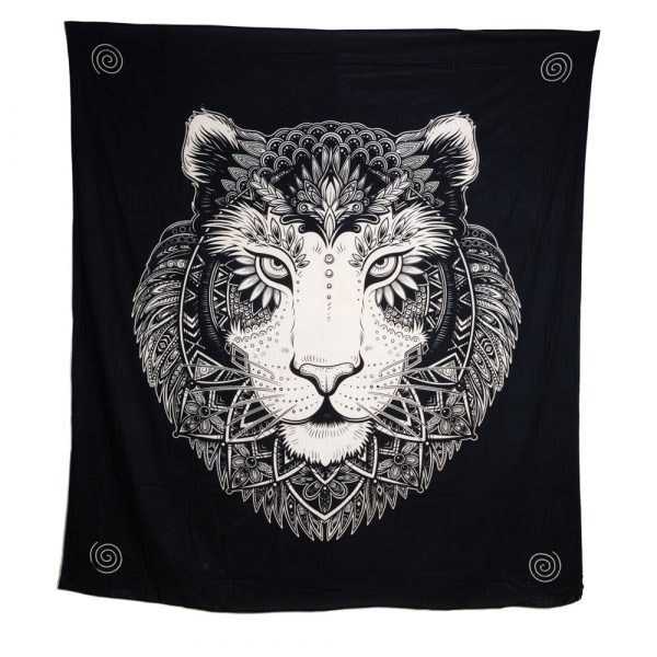 Dupla méretű oroszlán mintás ágytakaró vagy faliszőnyeg.