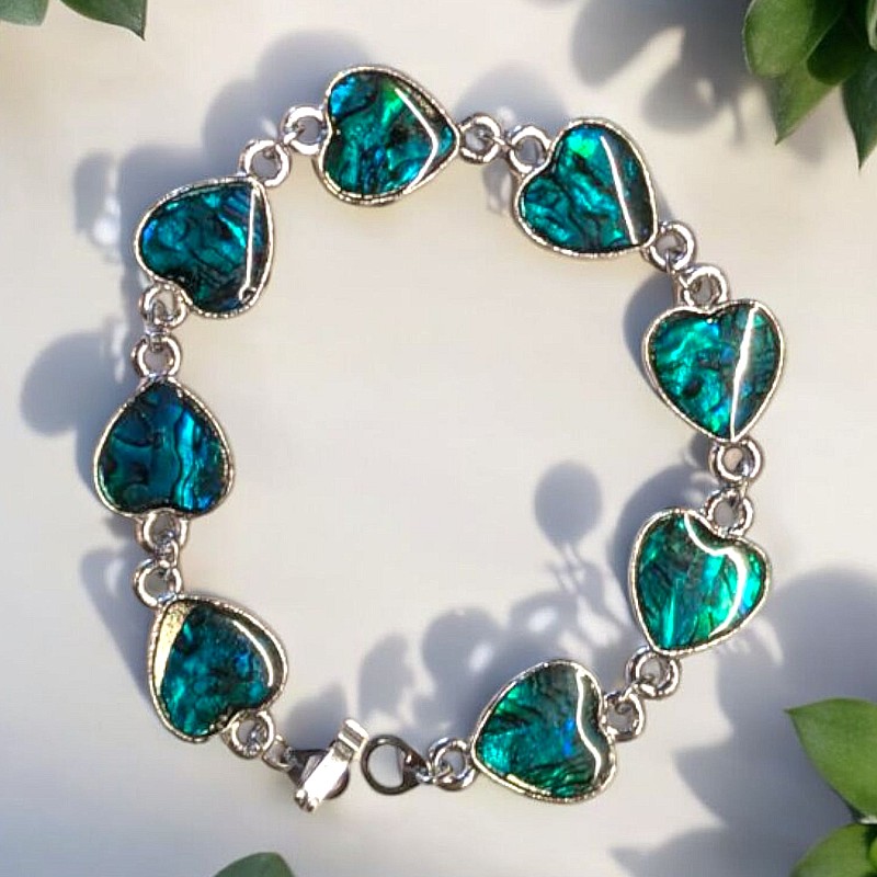 Egyedi bizsu karkötő műgyanta díszekkel, kapoccsal ellátva. Átlagos női csuklóra épp megfelelő a mérete.