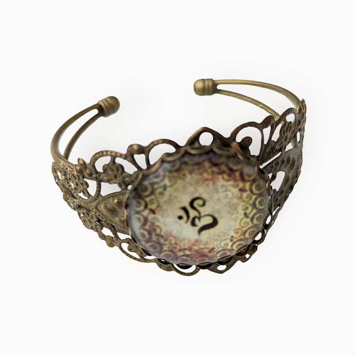 Fém karkötő nyitott OM szimbólumos üveg medállal.