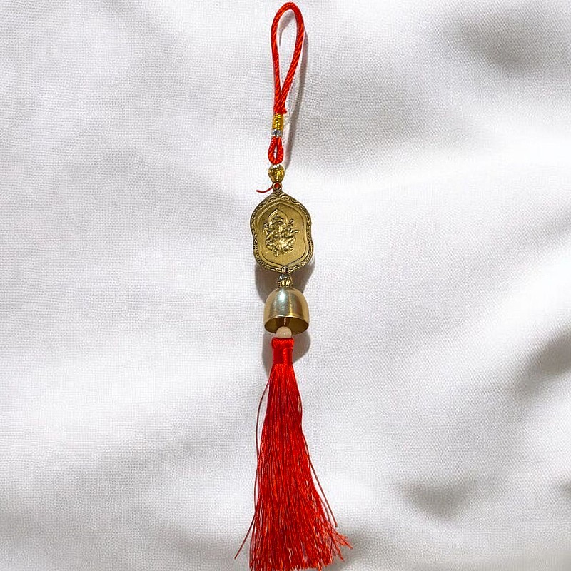 A függő közepén látható Ganésa-dombormű a hindu hagyományban a kezdetek védelmezője, az akadályok eltávolítója. Ezért sokan helyezik el lakásuk bejáratához, íróasztaluk fölé vagy autójuk visszapillantójára – bármilyen helyre, ahol védelemre, támogatásra és pozitív fordulatokra van szükség.