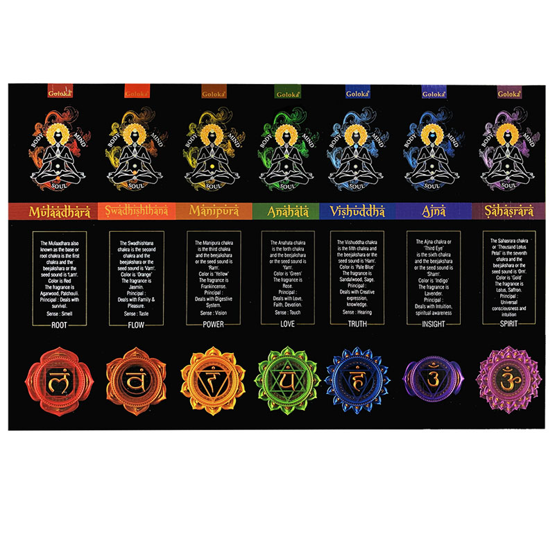 Goloka 7 Csakra Prémium Füstölőszett – Egyensúlyban a belső világoddal