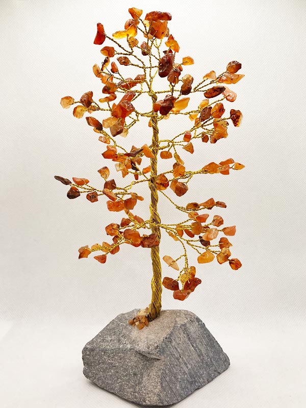 Gyönyörű féldrágakő szerencsefa, levelei és ágai szabadon állíthatóak tetszésünk szerint. Valamennyi féldrágakő ásvány fel van fűzve a fára (azaz nem csak ragasztva van). Igazán szép, időtálló ajándék.