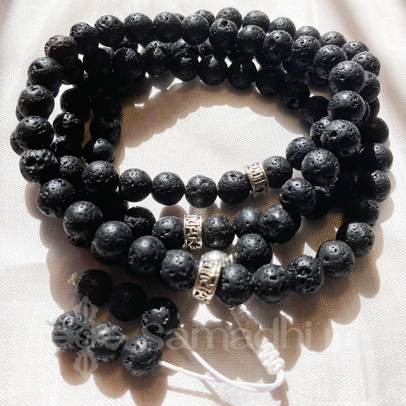 Lávakő ásvány mala Om Mani Padme Hum mantrás osztókkal Samadhi Mala