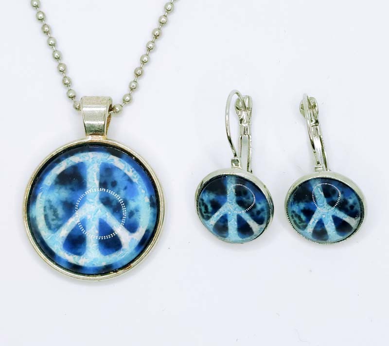 Mandala ékszer szett 2 részes, nyaklánc és karkötő, üveg mandala függőkkel. Mindkettő állítható méretű.