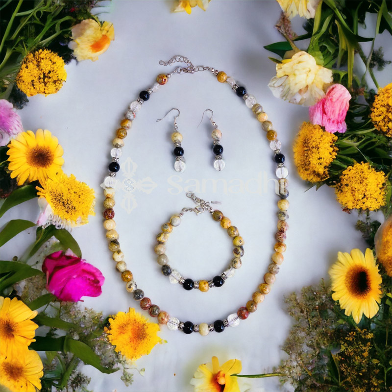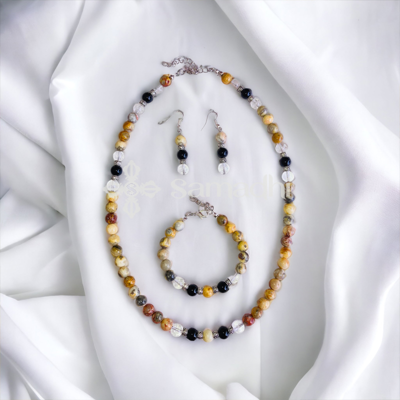 Sacral Wife Szett – Achát Hegyikristály Ónix Ásvány Ékszer Szett – Samadhi Ékszer