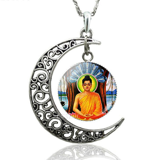 Sakjamuni Buddha szimbólumos üveg medálos nyaklánc