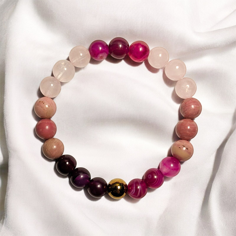 Ezt a karkötőt azzal a céllal terveztem, hogy oldja viselőjének korábbi traumatikus lenyomatait, és azok helyét szeretettel, békével, nyugalommal töltse fel. Állandó hatása a karkötőnek, hogy szeretetteljes energákkal tölti fel viselőjét. Ezen céloknak megfelelő áldást kap a karkötő.