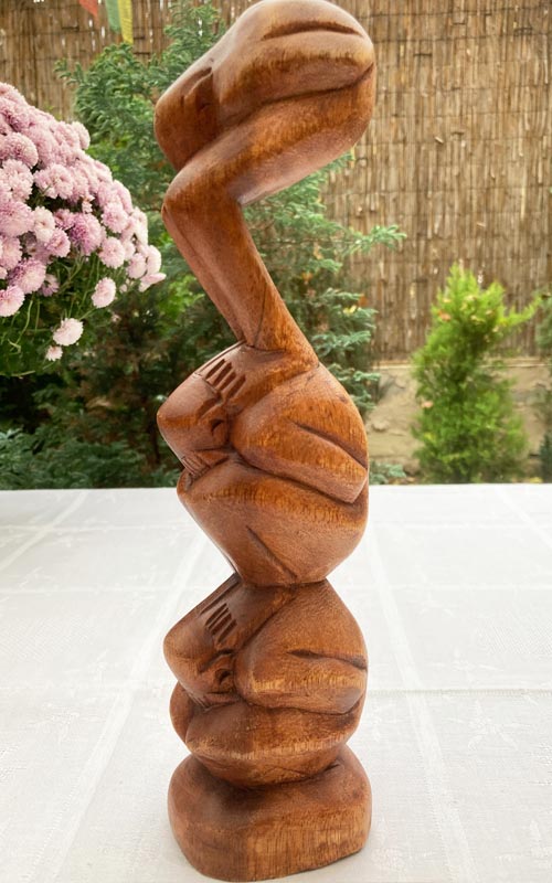 30 cm magas mahagóni szobor, 3 yogi alakkal. Származási hely: Indonézia.